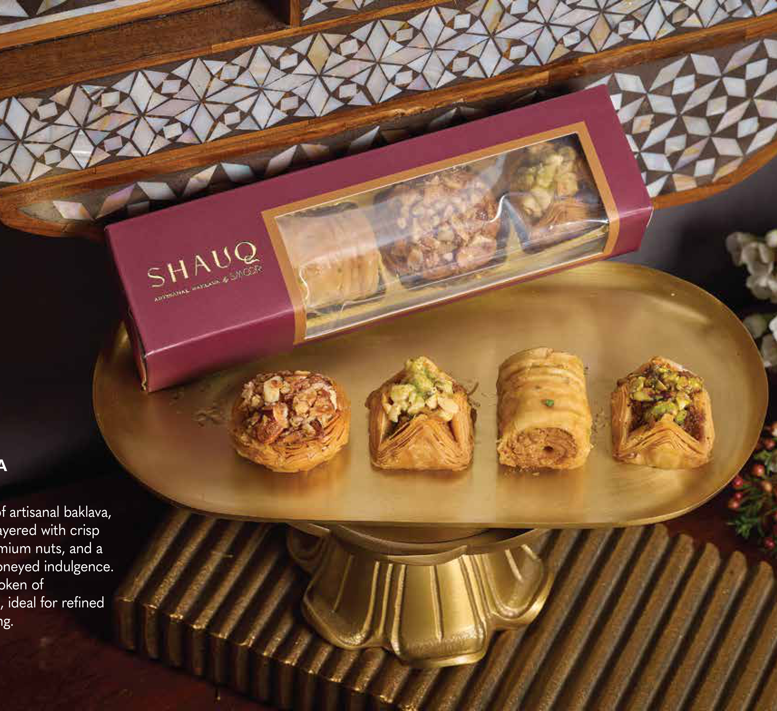 A selection of artisanal baklava, expertly layered with crisp premium nuts and a honeyed indulgence. This exquisite treat is perfect for refined gifting occasions.
