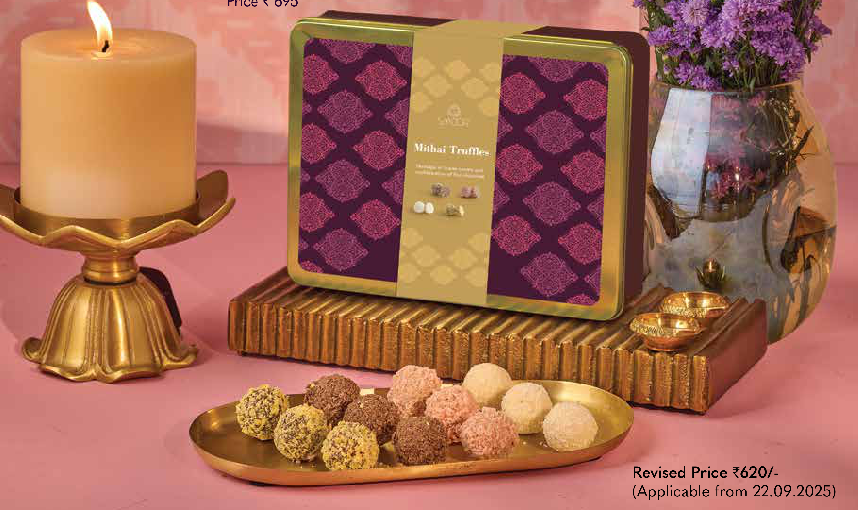 An exquisite collection of assorted mithai truffles presented in a beautifully designed gift box. Perfect for gifting on special occasions, these truffles offer a delightful blend of traditional Indian sweets and modern confectionery.