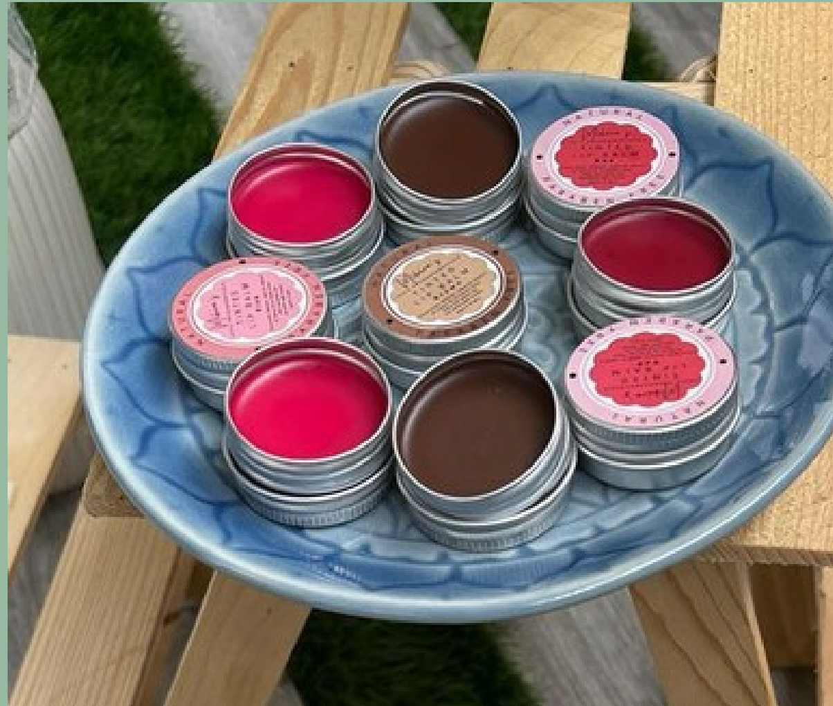 A collection of natural, tinted lip balms presented in convenient, reusable metal tins. These balms offer subtle color and nourishing hydration for your lips.