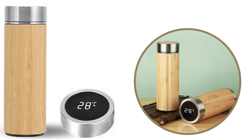Bamboo Smart Water Bottle with Temperature Display