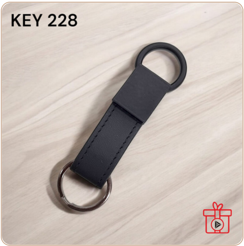 A sleek and practical black faux leather keychain featuring a durable metal ring. This keychain is designed for everyday use, offering a stylish way to keep your keys organized. Its simple yet elegant design makes it a versatile accessory.