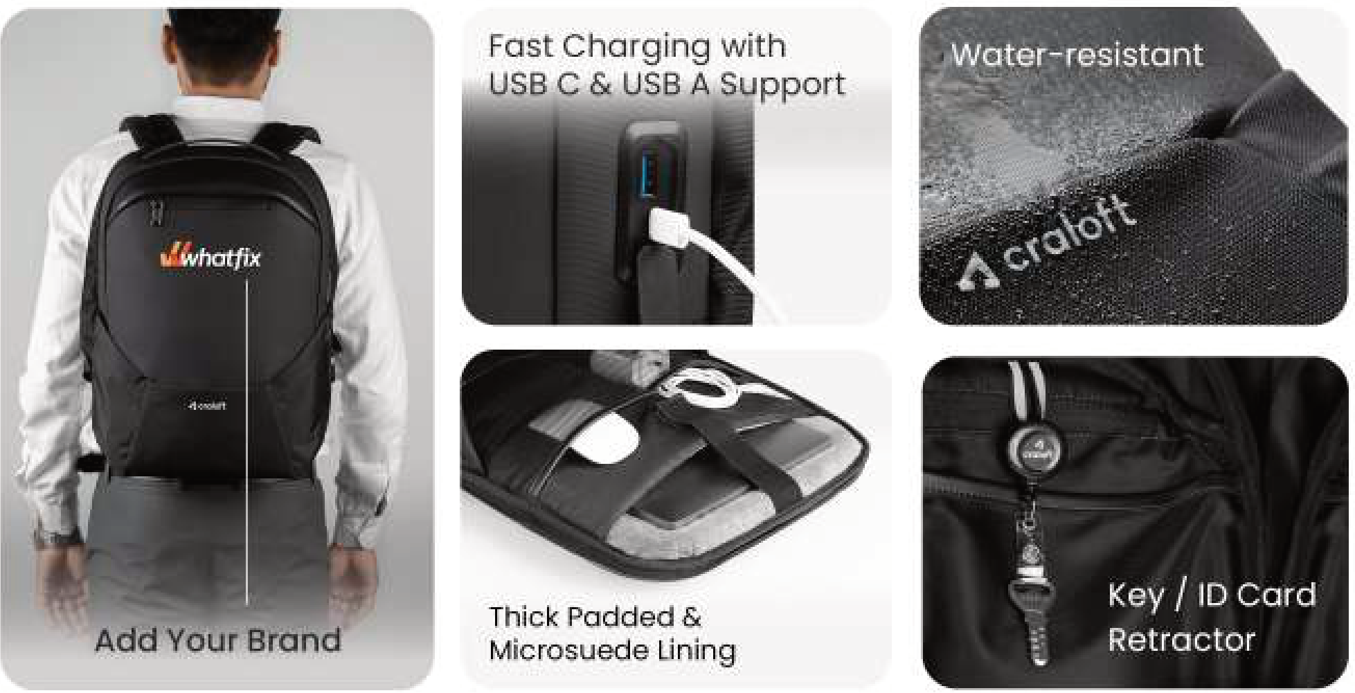 Features: USB Charging Port, Padded Shoulder Straps, Multiple Compartments, Water-Resistant Fabric, External USB Port
