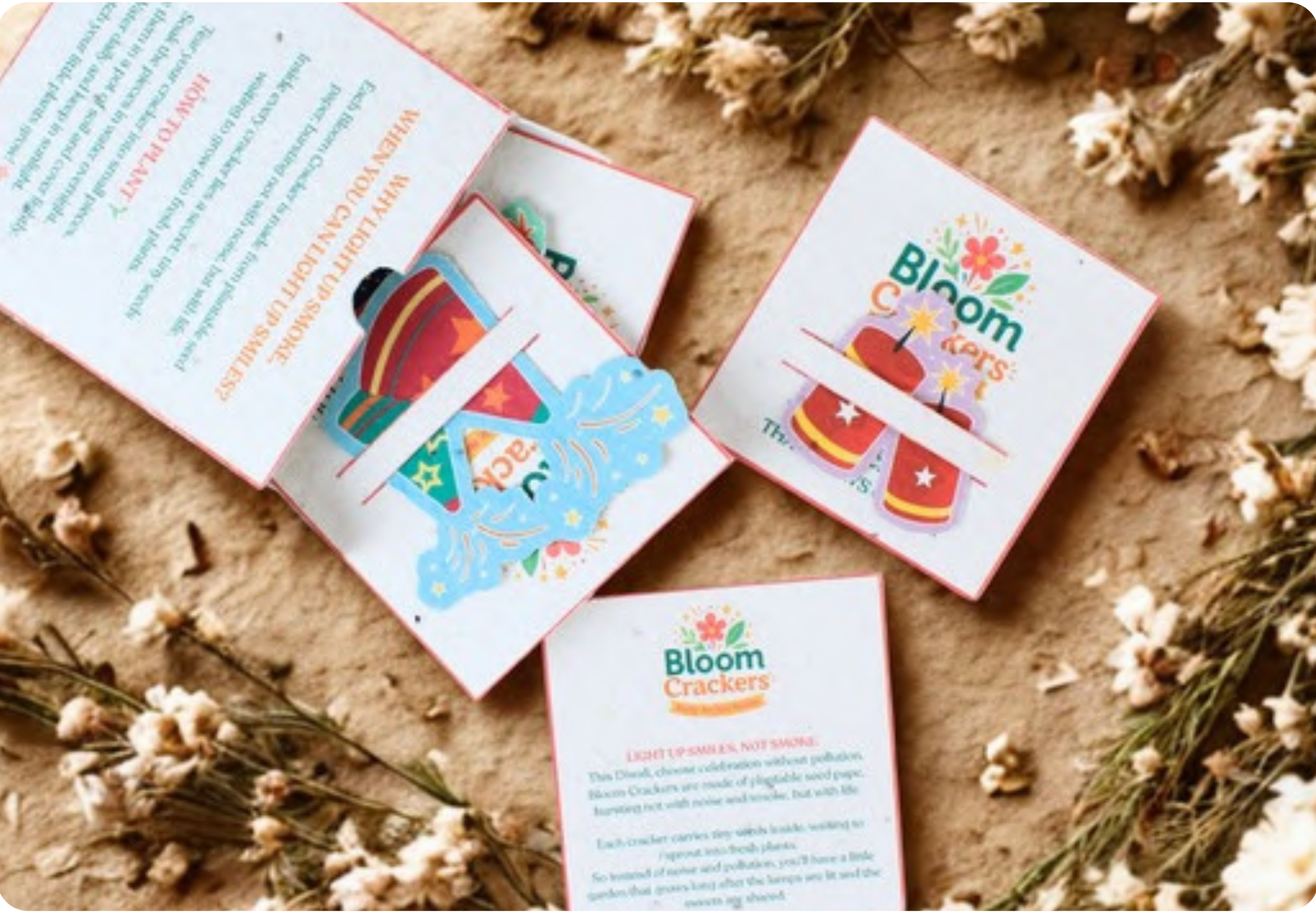 Eco-friendly crackers made from seed paper, designed to purify air rather than pollute. These crackers offer a sustainable way to celebrate, leaving behind a positive environmental impact.
