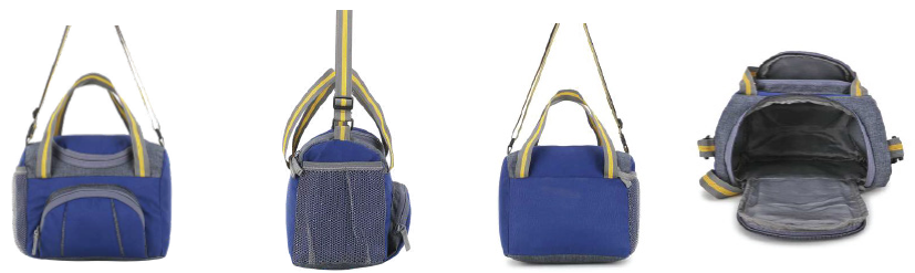 Features: Adjustable shoulder strap, Dual top handles, Front zippered pocket, Mesh side pocket, Spacious main compartment