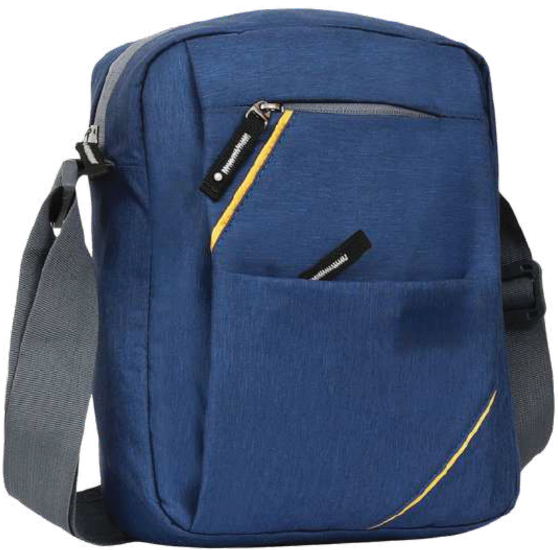 This practical crossbody bag is crafted from durable nylon, featuring a vibrant blue hue with stylish yellow accents. It offers multiple pockets for organized storage and an adjustable shoulder strap for comfortable wear.