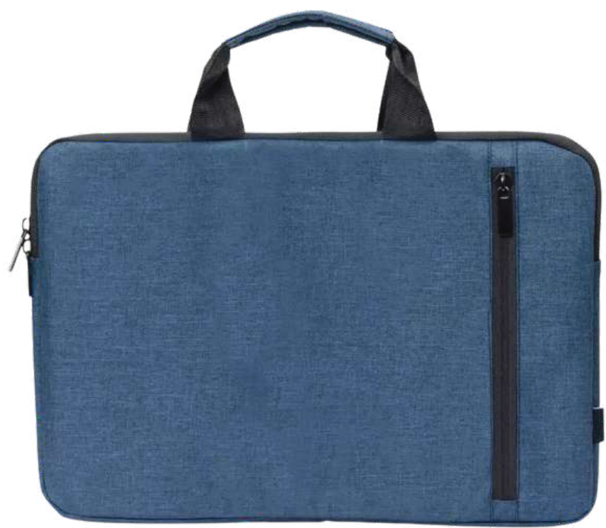 This practical laptop sleeve features a durable textured exterior in a classic blue hue. It includes a convenient front zipper pocket for storing accessories and a comfortable top handle for easy carrying. Designed to protect your device from everyday wear and tear.