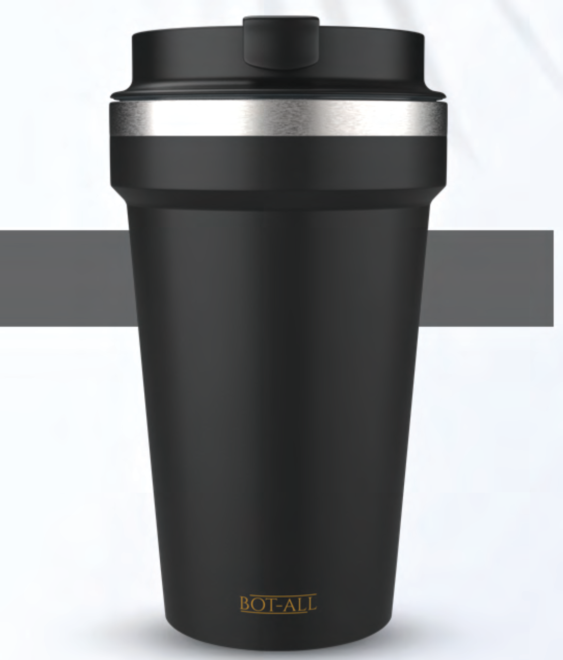 This sleek black travel tumbler from BOT-ALL features a secure lid and a durable construction, perfect for your daily commute or outdoor adventures. Its insulated design helps maintain beverage temperature for extended periods.