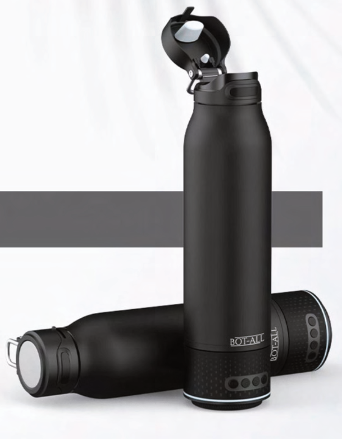 This innovative BOT-ALL smart water bottle features an integrated Bluetooth speaker, allowing you to enjoy your favorite music on the go. Crafted from durable materials, it's designed for both hydration and entertainment.