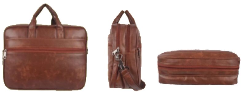 Brown Faux Leather Briefcase with Adjustable Strap