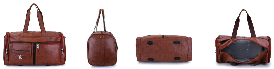 Brown Faux Leather Duffle Bag with Multiple Pockets