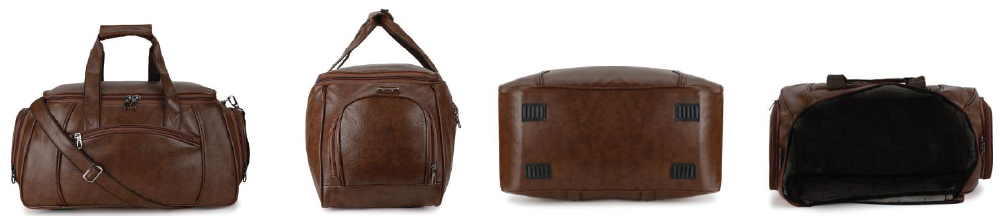 Brown Faux Leather Duffle Bag with Multiple Pockets