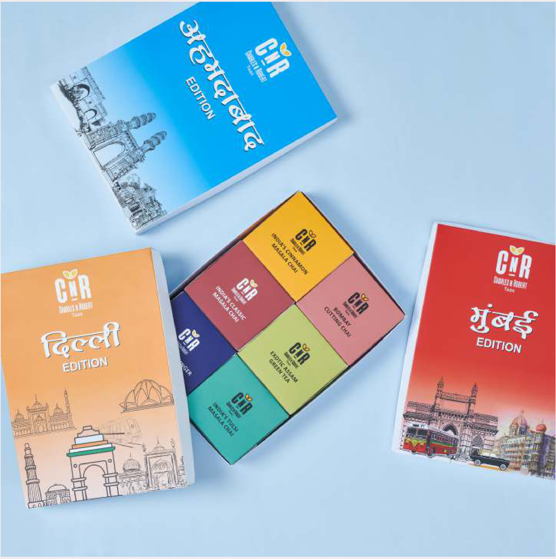 Experience the essence of India with this curated tea collection, featuring unique blends inspired by iconic cities. Each box showcases distinct artwork representing Delhi, Ahmedabad, and Mumbai, making it a perfect gift for tea connoisseurs and travel enthusiasts alike.
