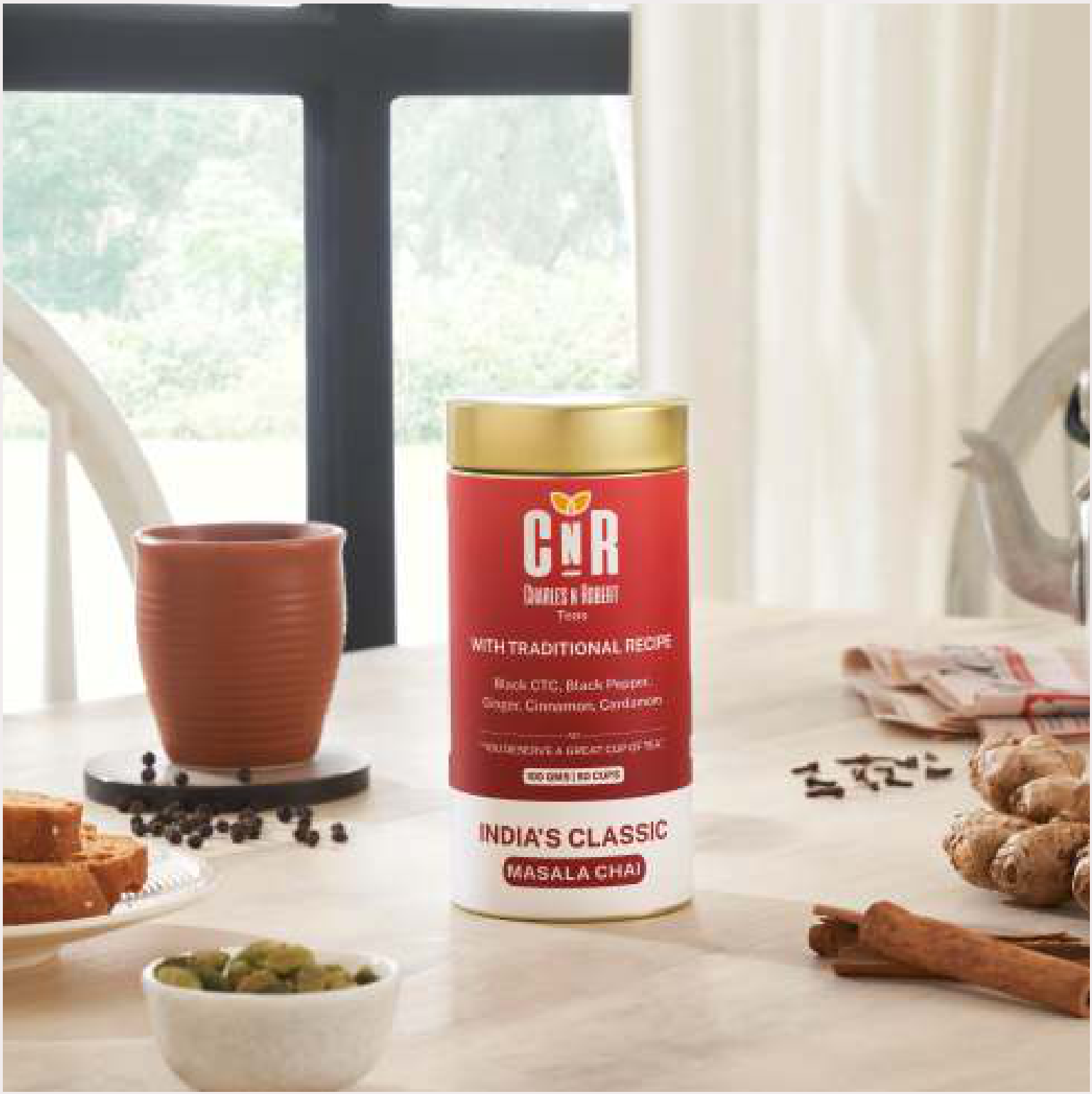 Experience the authentic taste of India with Charles & Robert's India's Classic Masala Chai. Crafted with a traditional recipe, this blend features black CTC tea infused with aromatic spices like black pepper, ginger, cinnamon, and cardamom. Enjoy a rich and flavorful cup that's perfect for any time of day.