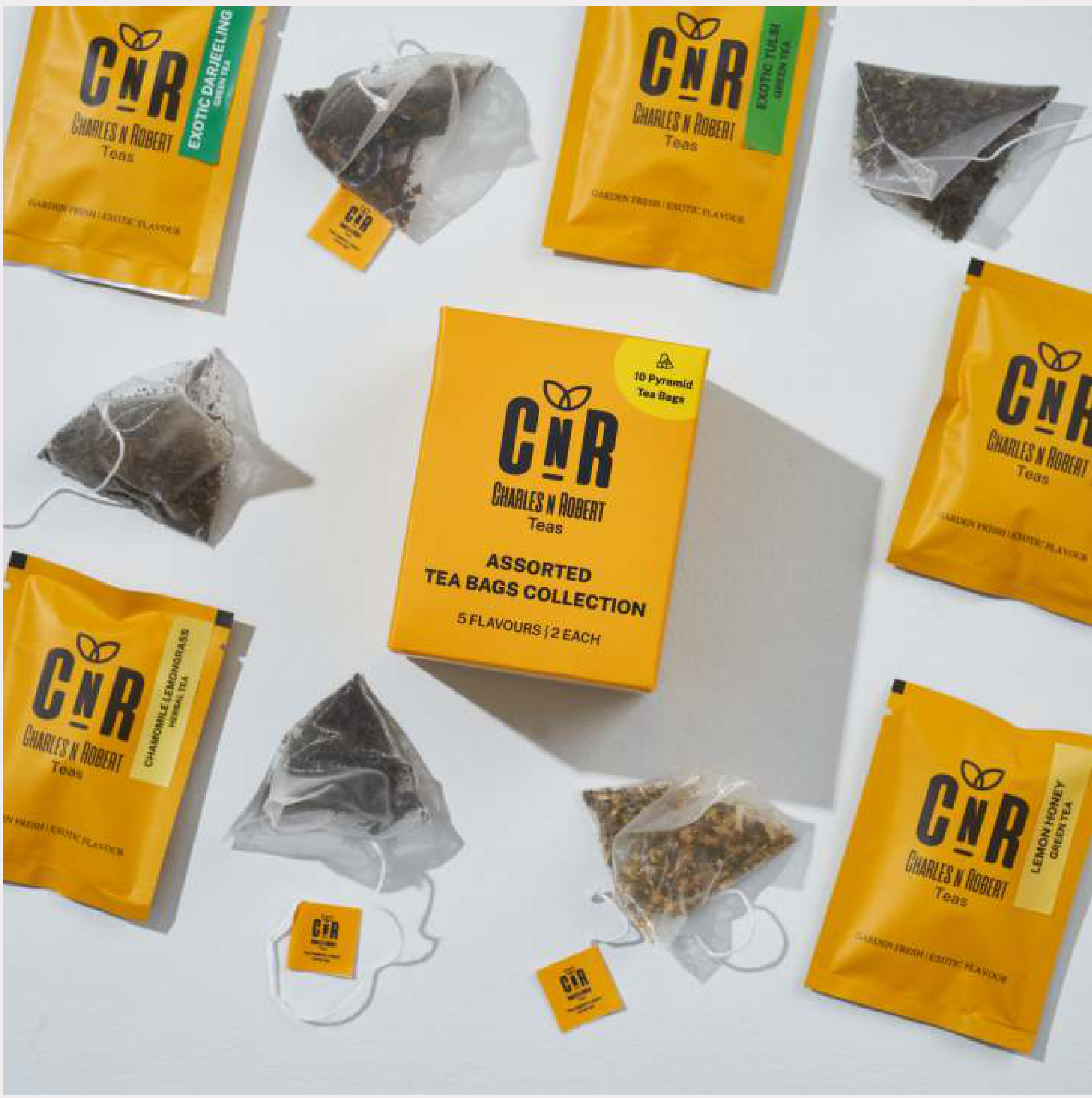 Explore a delightful assortment of 5 unique tea flavors with this collection from Charles N Robert. Each box contains 10 pyramid tea bags, offering a convenient and enjoyable tea experience.