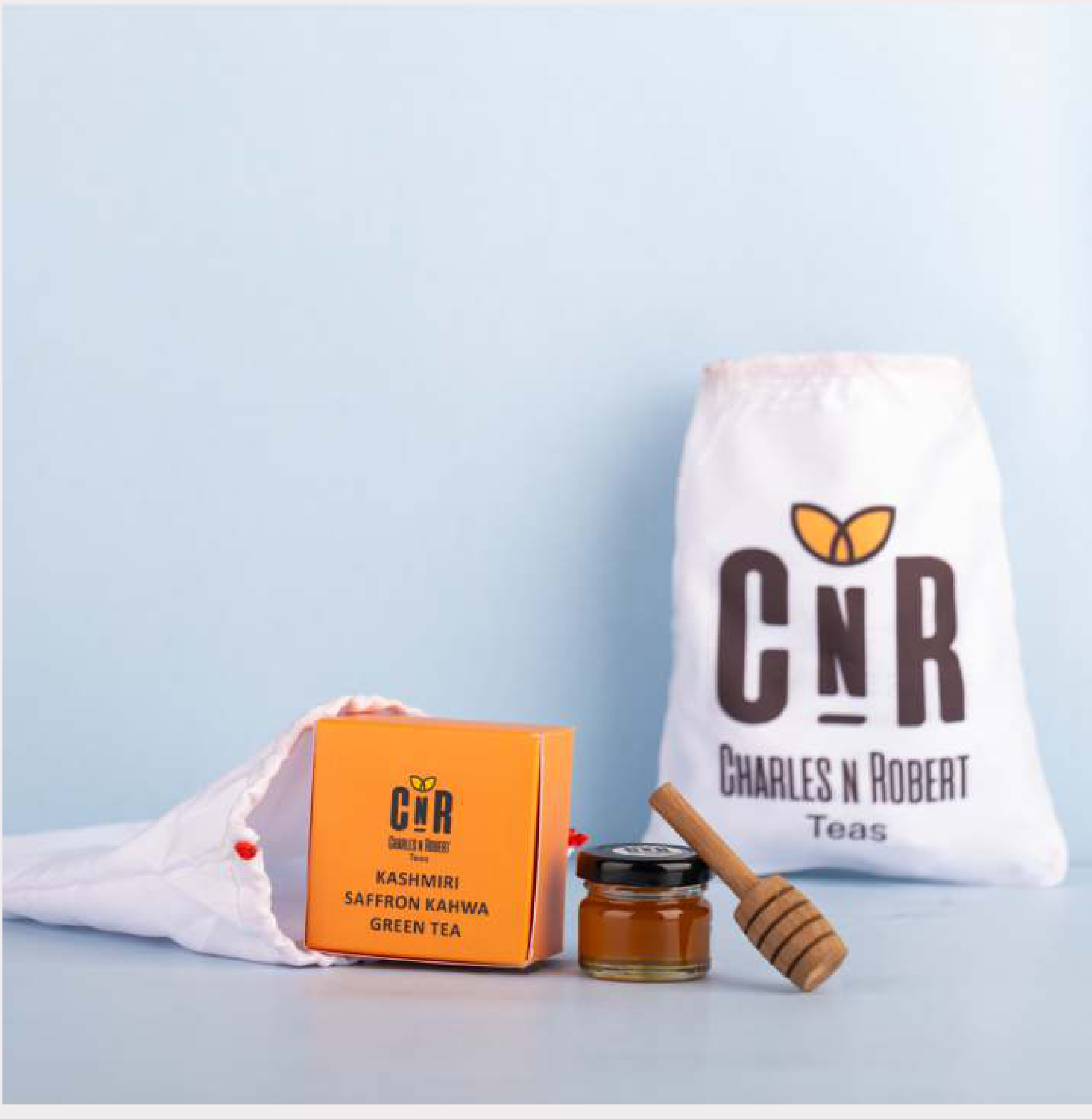 Charles N Robert Kashmiri Saffron Kahwa Green Tea Gift Set with Honey