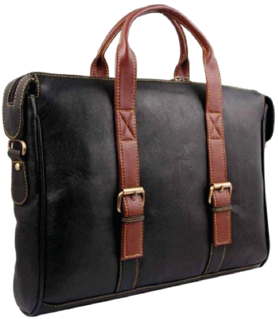 This sophisticated leather briefcase features a classic black exterior complemented by rich brown leather straps and accents. Its durable construction and timeless design make it ideal for professionals seeking both style and functionality.
