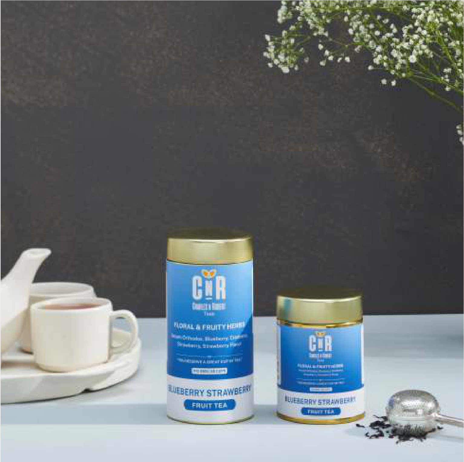 Experience the delightful blend of blueberry and strawberry in this floral and fruity fruit tea from CNR. Packaged in elegant tins, it's perfect for a refreshing beverage any time of day.