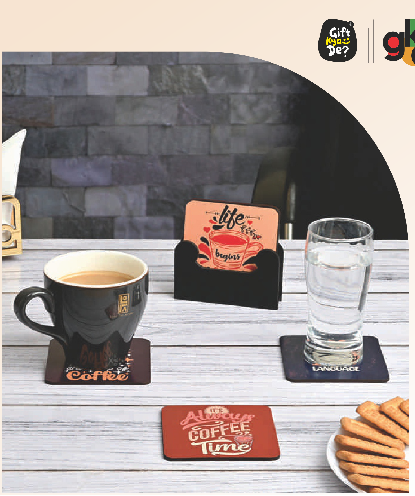 Enhance your coffee moments with this charming coaster set. Featuring vibrant coffee-themed designs and a convenient holder, these coasters protect your surfaces while adding a touch of personality to your space. Perfect for everyday use or as a thoughtful gift.