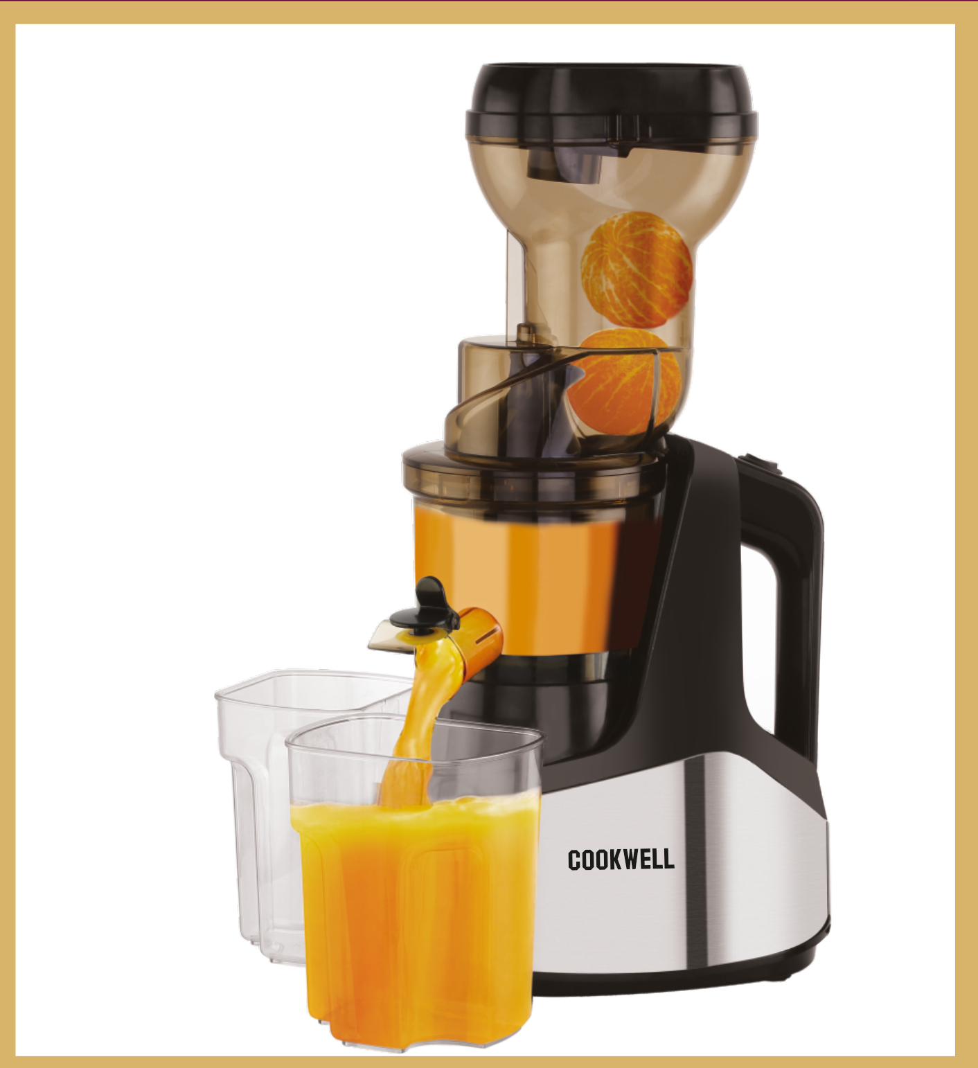 This COOKWELL electric juicer efficiently extracts fresh juice from fruits like oranges. Its design allows for easy operation and cleaning, making it a practical addition to any kitchen for healthy living.