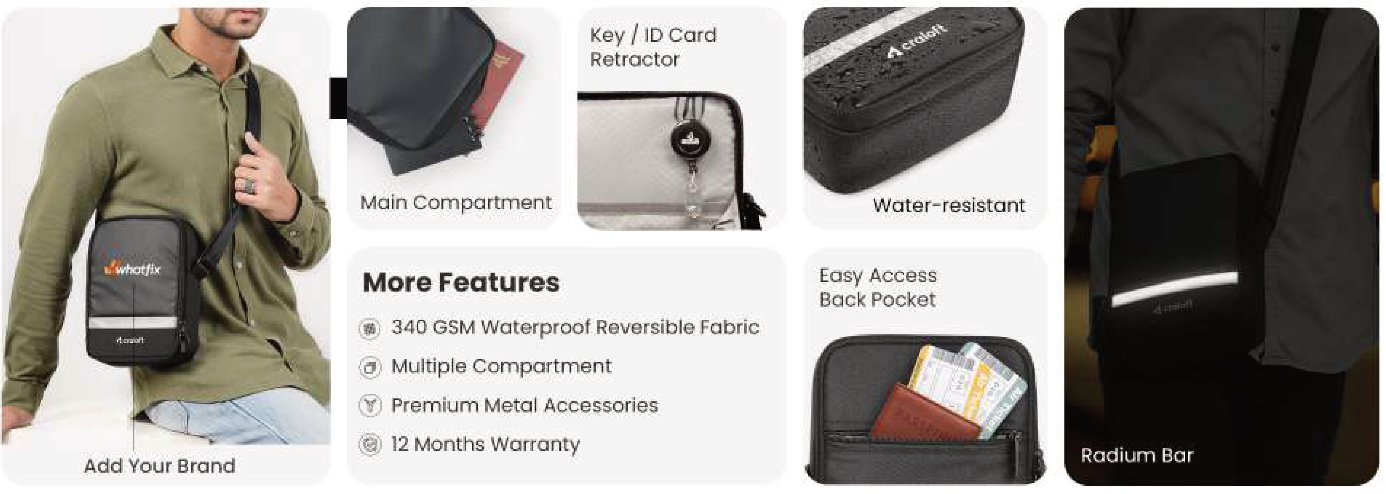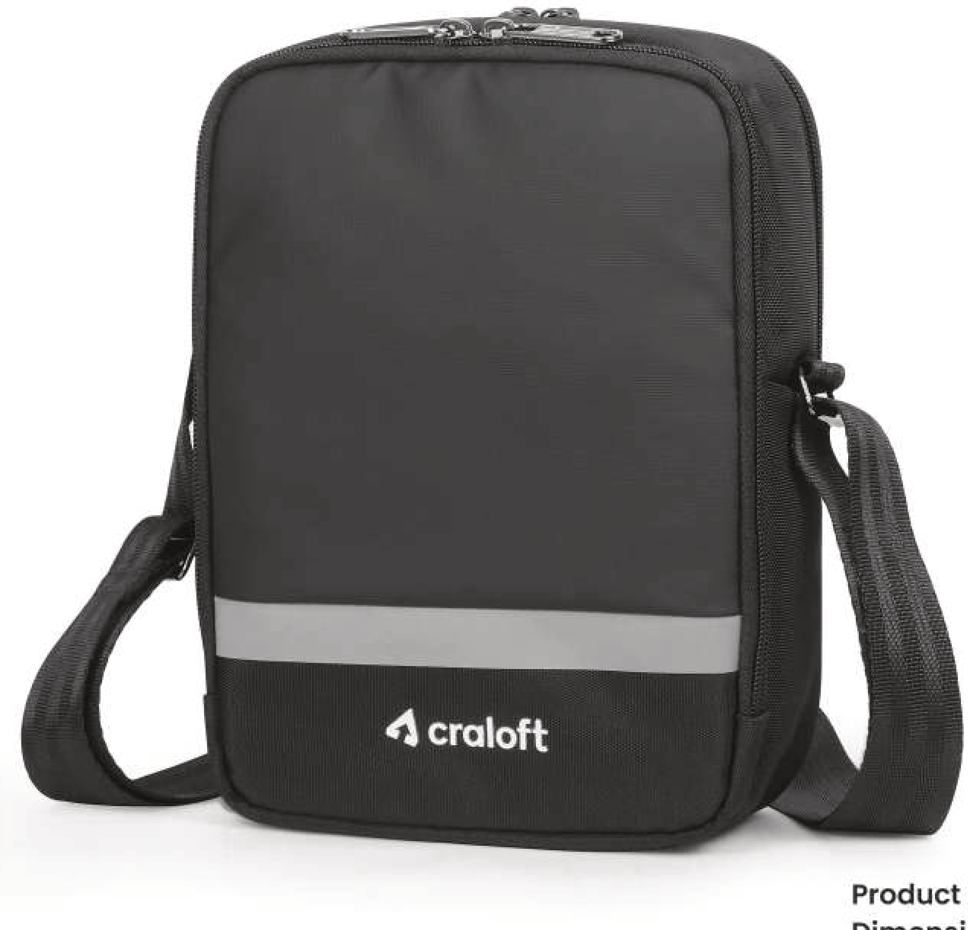 This practical crossbody bag from Craloft features a durable black exterior with a subtle reflective stripe for added visibility. It's designed for everyday use, offering convenient storage and a comfortable shoulder strap.