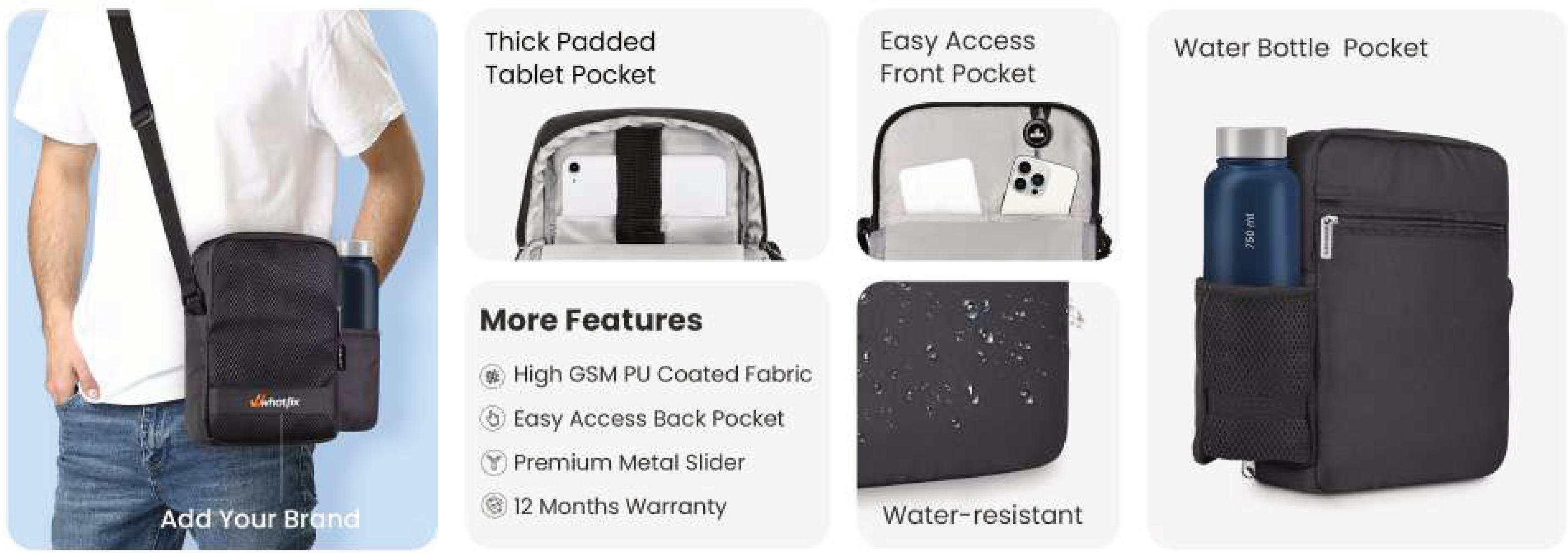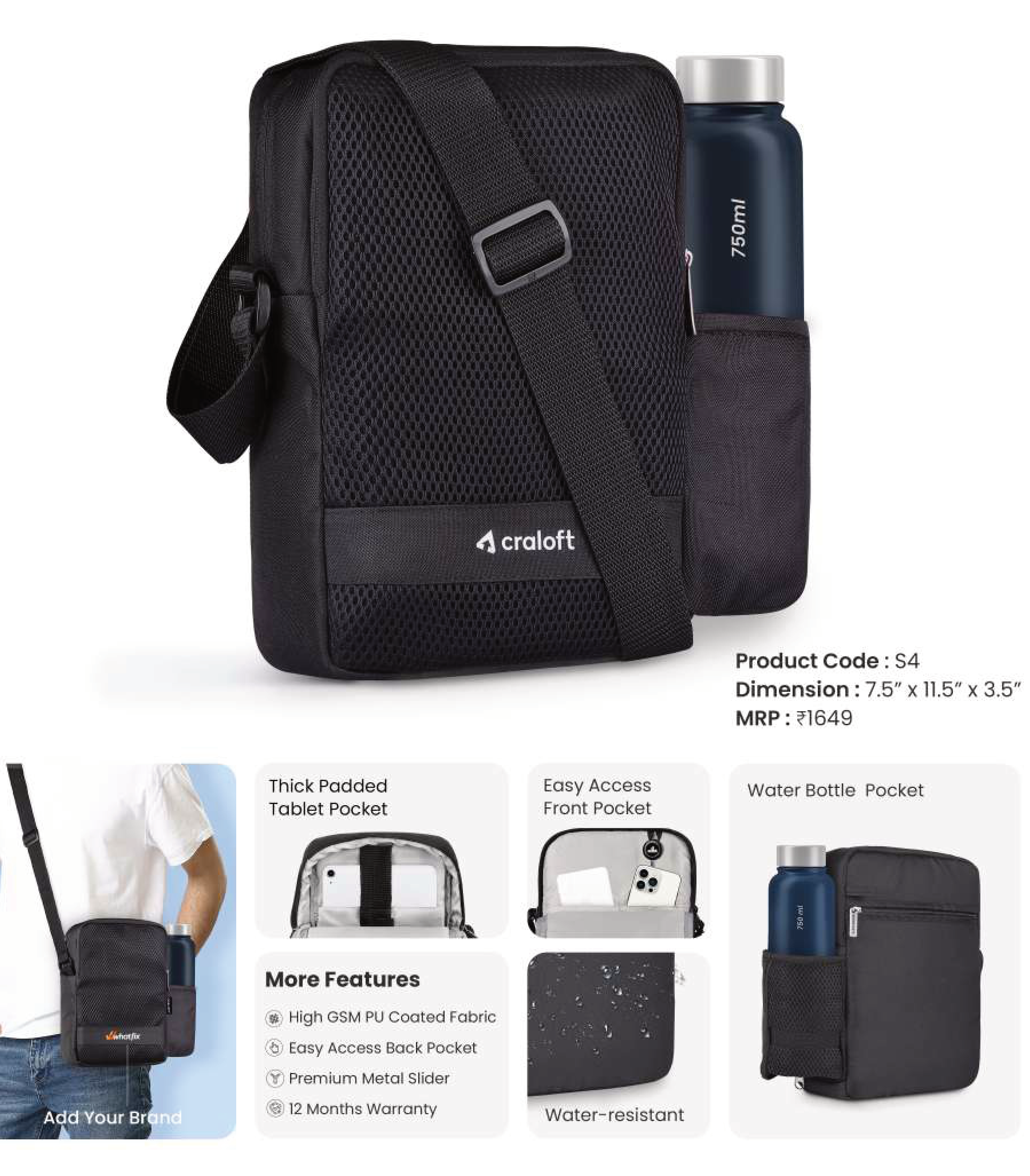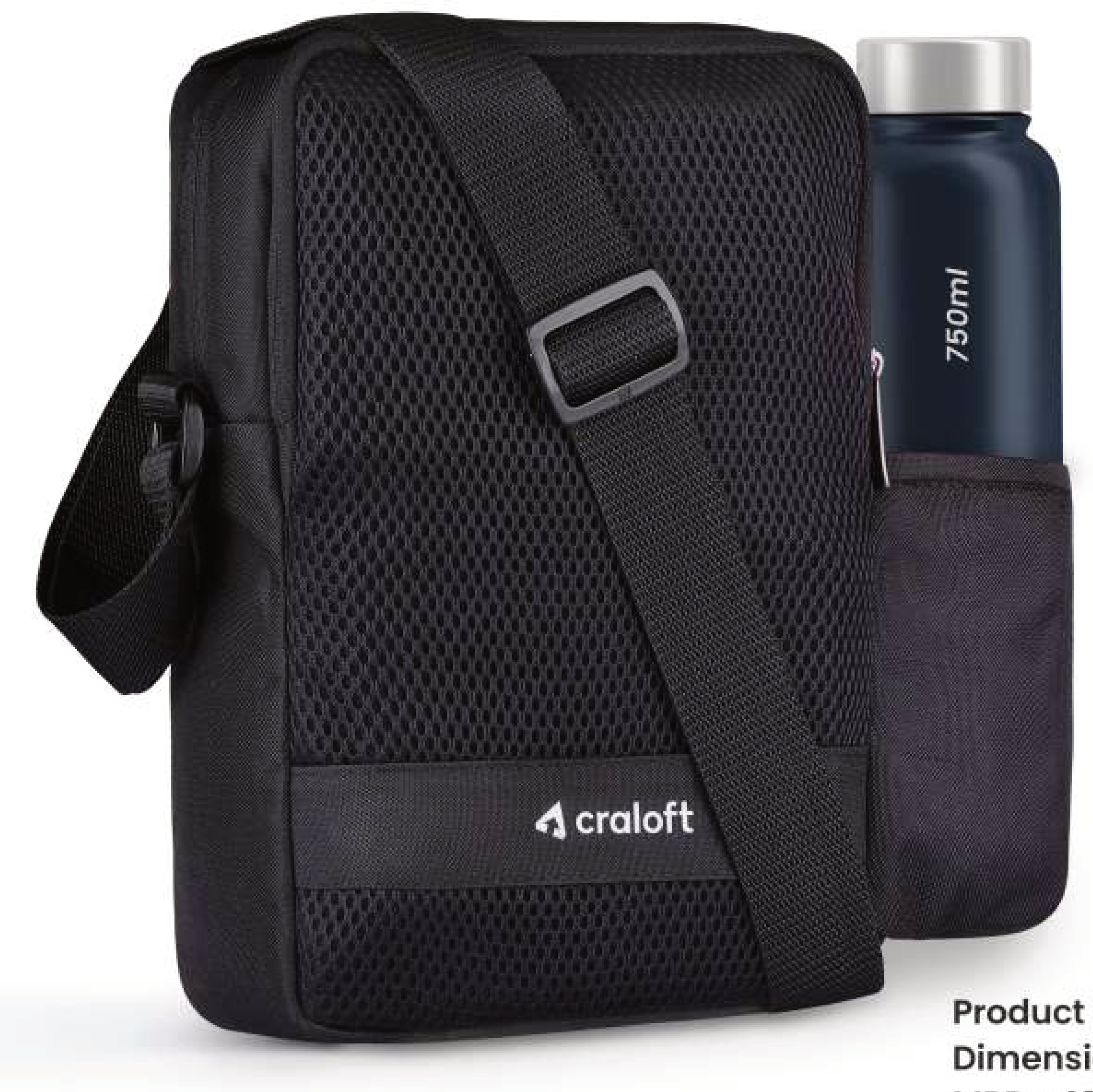 This versatile black crossbody bag from Craloft features a breathable mesh back panel and an integrated water bottle holder. Its practical design makes it ideal for daily commutes, travel, or outdoor activities.