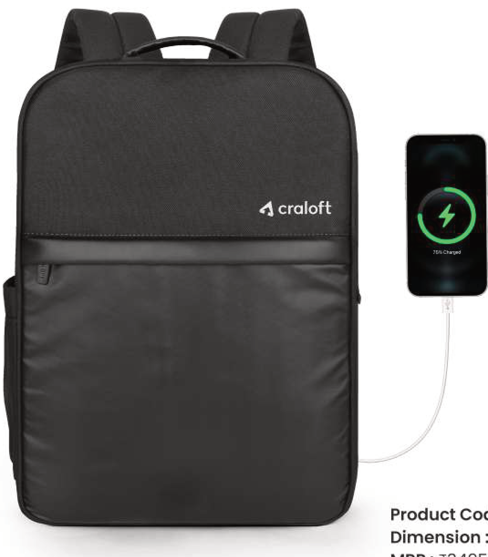 This Craloft backpack offers convenient USB charging capabilities, allowing you to keep your devices powered on the go. Its durable construction and sleek black design make it ideal for daily commutes, travel, and professional use.