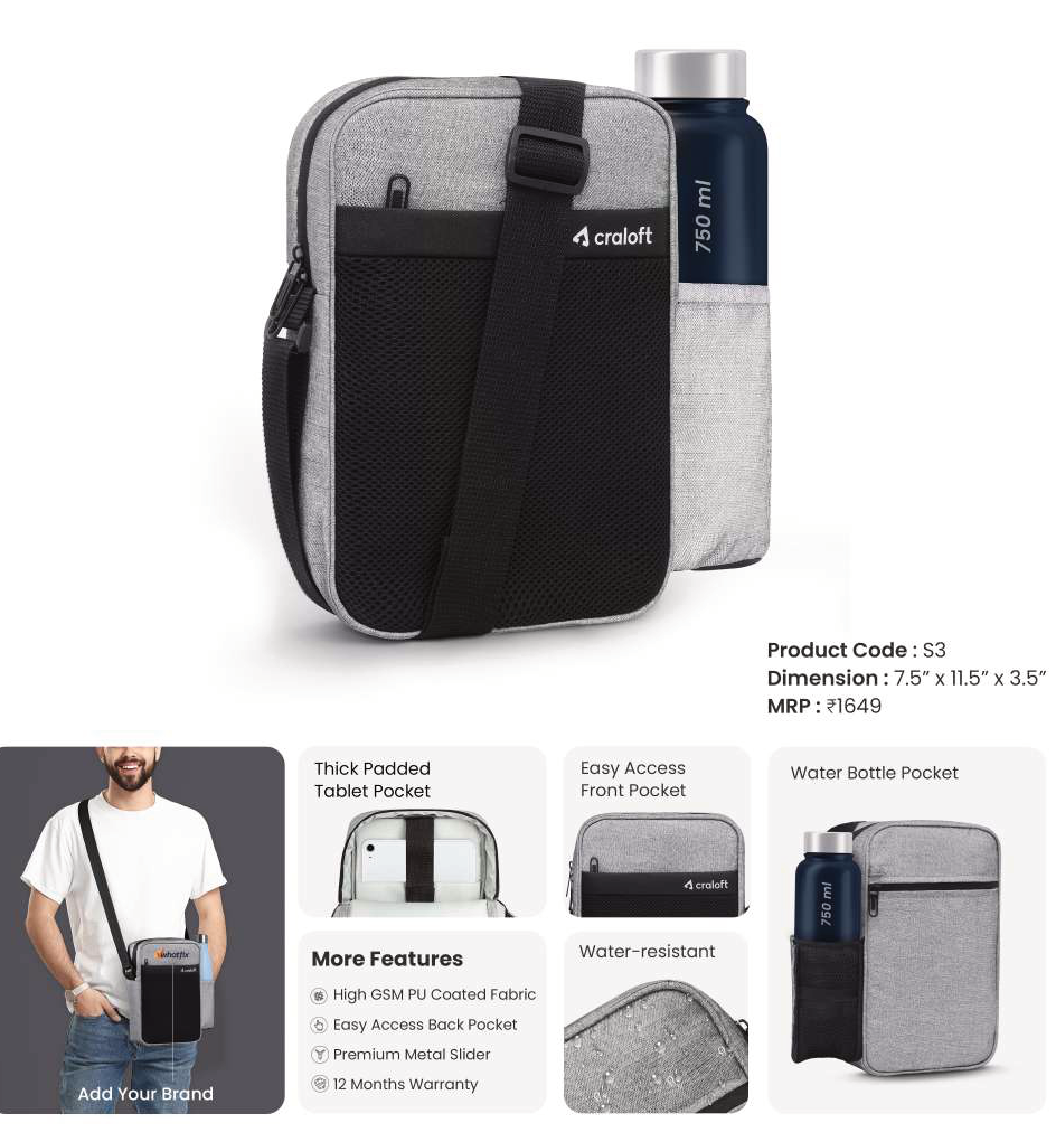 Craloft Grey Crossbody Bag with Water Bottle Holder