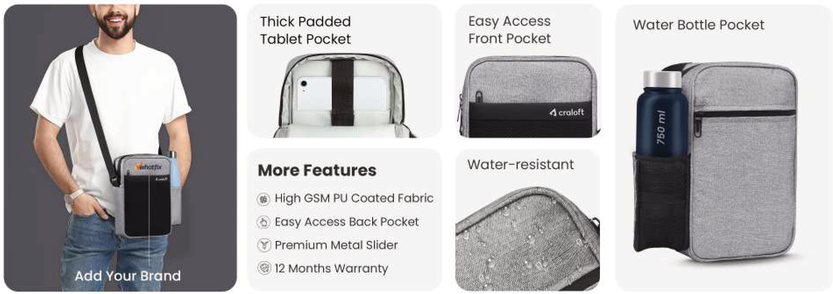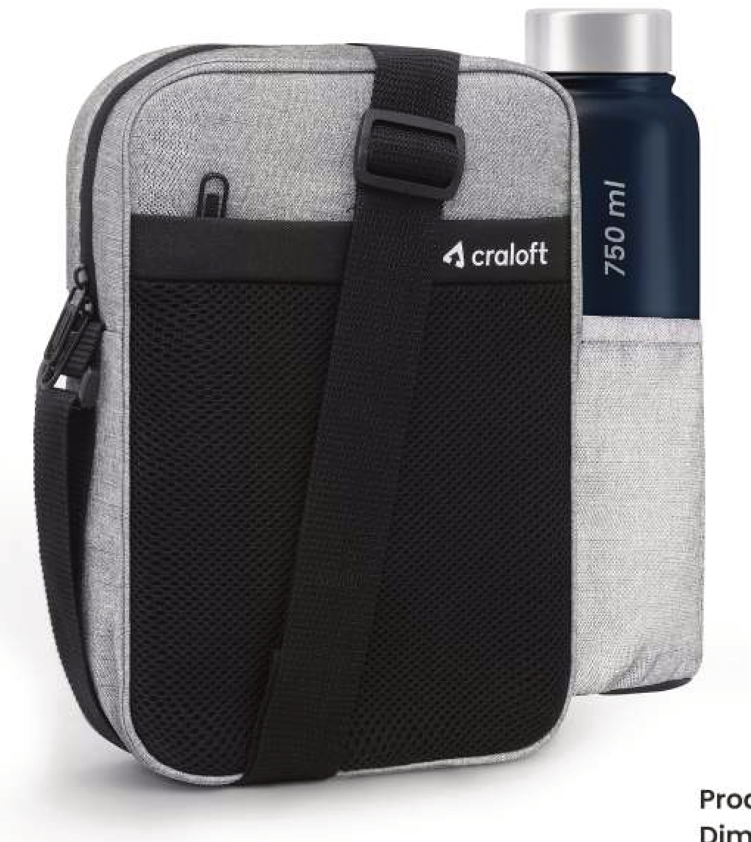 This versatile grey crossbody bag from Craloft features a durable construction with a mesh front pocket and an integrated water bottle holder. It's perfect for everyday use, travel, or outdoor activities.