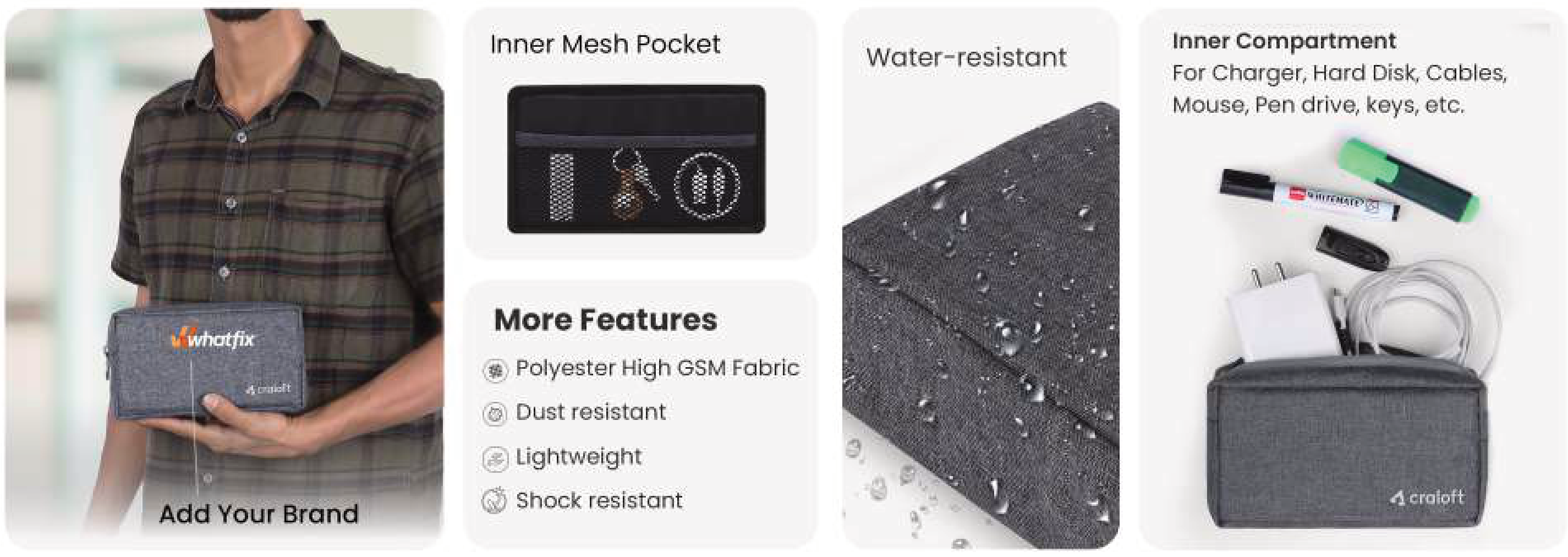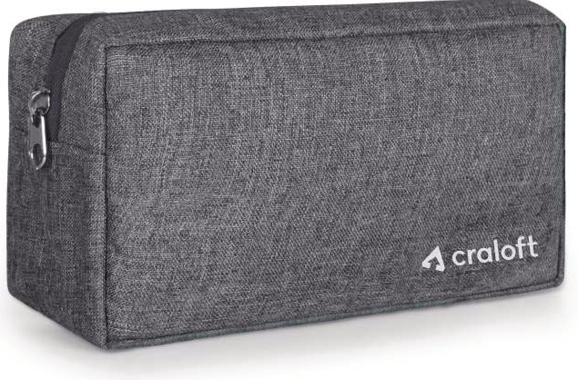 This Craloft toiletry bag features a durable grey textured fabric and a convenient zippered closure. Its compact design makes it ideal for organizing toiletries and essentials during travel or for everyday use.