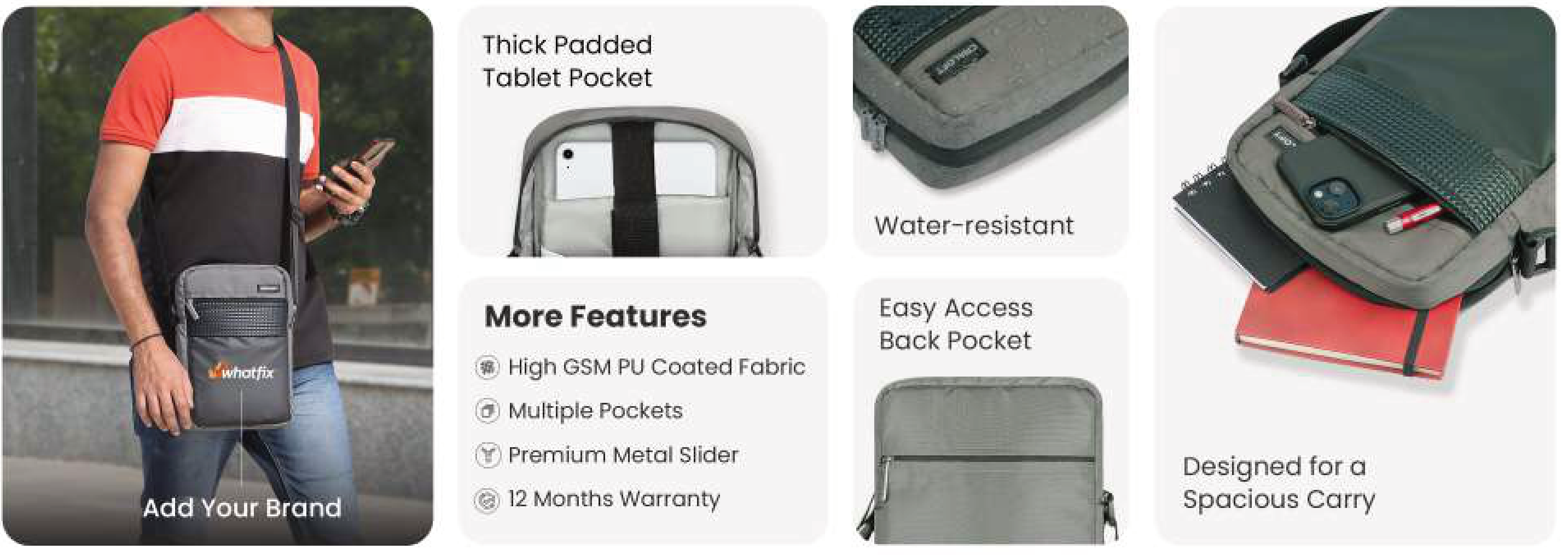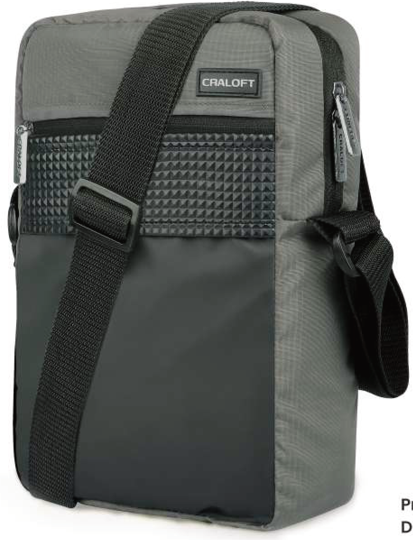 This CRALOFT crossbody bag is designed for everyday use, featuring a durable construction and a stylish two-tone grey and black design. It includes multiple compartments for organized storage and an adjustable shoulder strap for comfortable carrying.