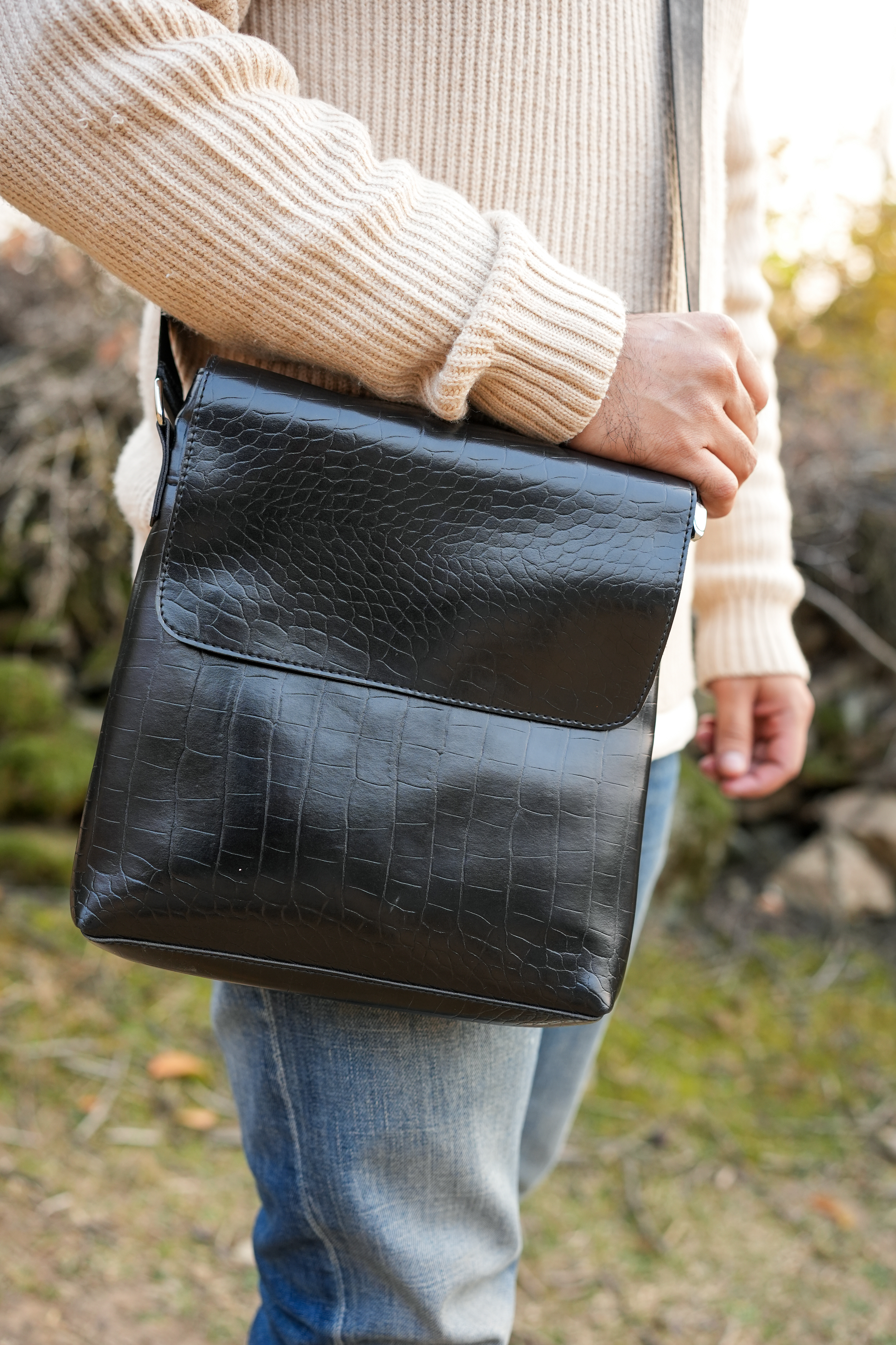 The Vegan Leather Crossbody Bag in Croco Design from leathernoleather is a spacious and stylish accessory that combines luxury with functionality. Crafted from high-quality vegan leather, the bag features a textured croco pattern, offering a sophisticated and bold look. Its roomy interior provides ample space for all your essentials, making it perfect for both daily use and travel. The luxurious feel of the fabric, along with its cruelty-free composition, ensures that you enjoy both style and sustainability in one elegant package.