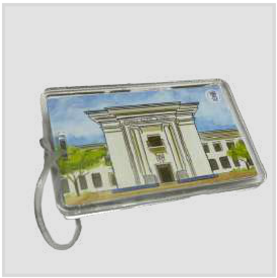 Durable and personalized luggage tag featuring a watercolor-style illustration of a building. Includes a flexible strap for easy attachment to any suitcase or bag, making your travel gear easily identifiable.