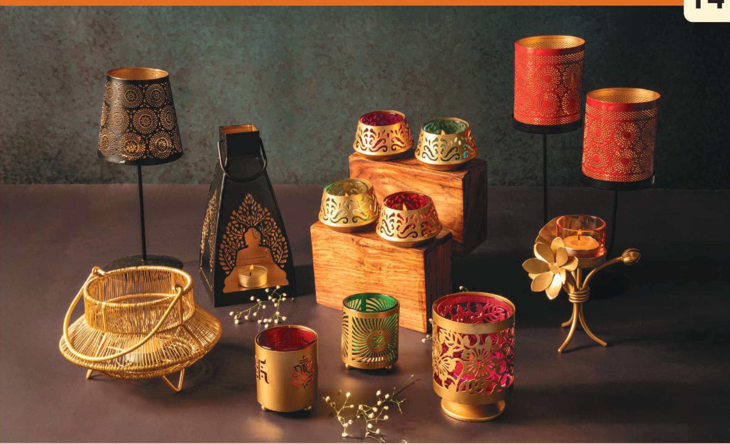 An exquisite collection of decorative metal lanterns and candle holders, perfect for enhancing your home ambiance. This set features intricate cutwork designs and rich metallic finishes, adding a touch of elegance and warmth to any space.