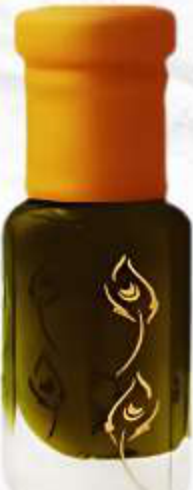 This exquisite perfume oil comes in a beautifully designed bottle featuring a delicate gold floral motif. The rich, dark liquid and the vibrant orange cap suggest a luxurious and captivating fragrance experience.
