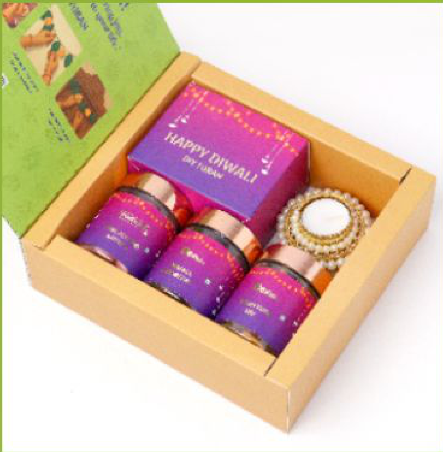 Diwali Gift Box with Scented Candles and Decorative Tealight Holder