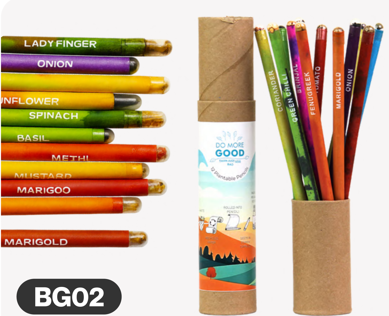 This set includes 12 plantable pencils, each labeled with a different herb or flower name. Once used, the pencils can be planted to grow into plants, promoting sustainability. The packaging also features instructions on how to plant them.