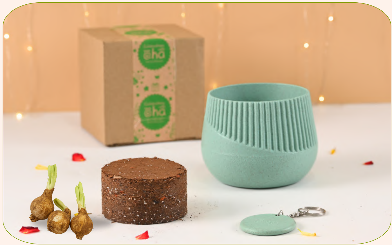 This kit includes a stylish, eco-friendly planter, a compressed soil disc, and plant bulbs, perfect for starting your indoor garden. The planter features a ribbed texture and a modern design, while the soil disc expands with water for easy planting. It's a complete set for beginners and plant enthusiasts alike.