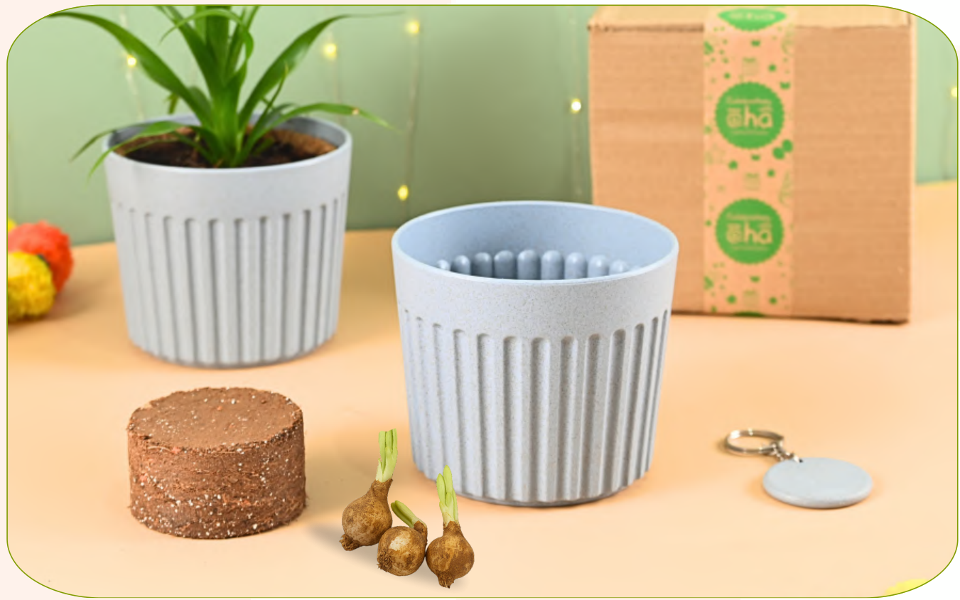 Eco-Friendly Wheat Straw Planter Set with Bulbs and Soil Disc