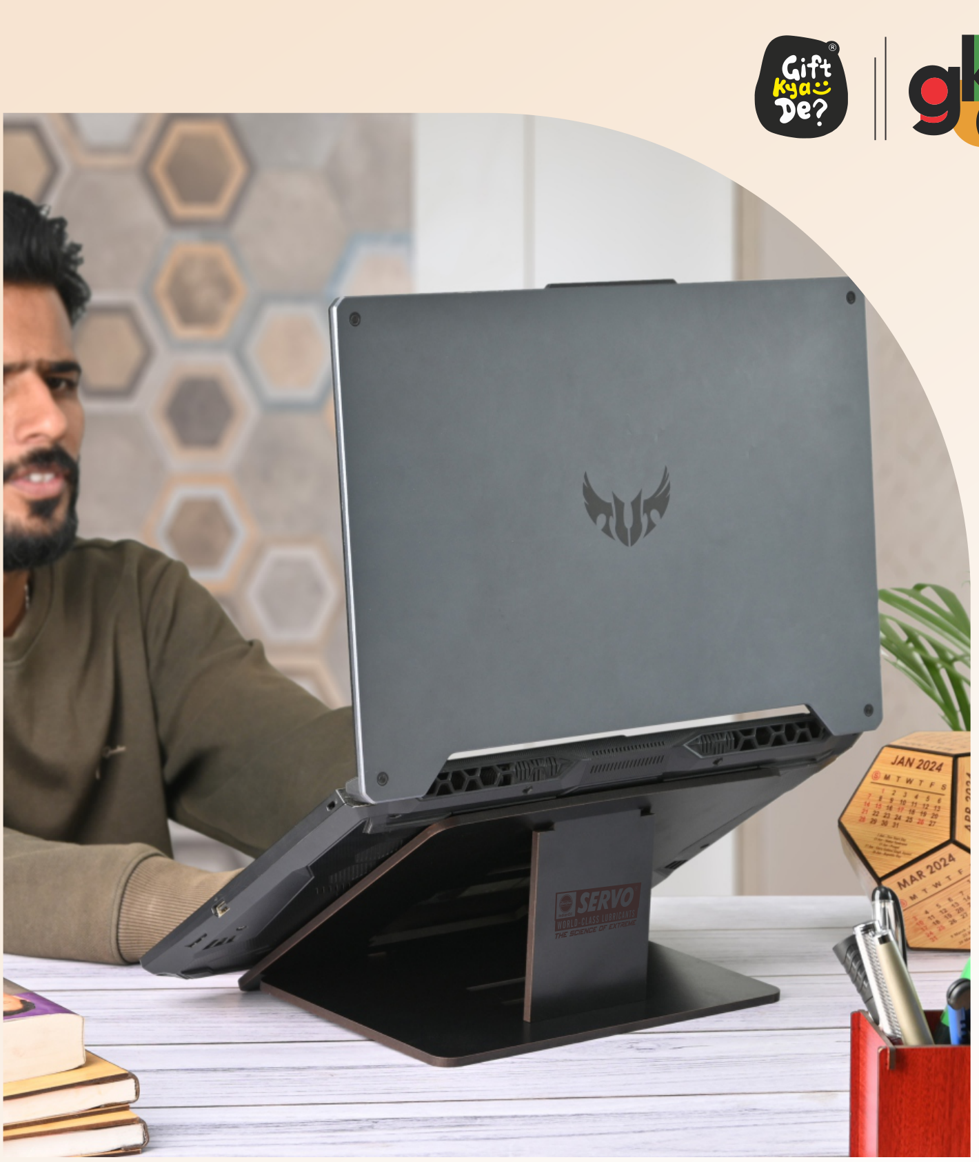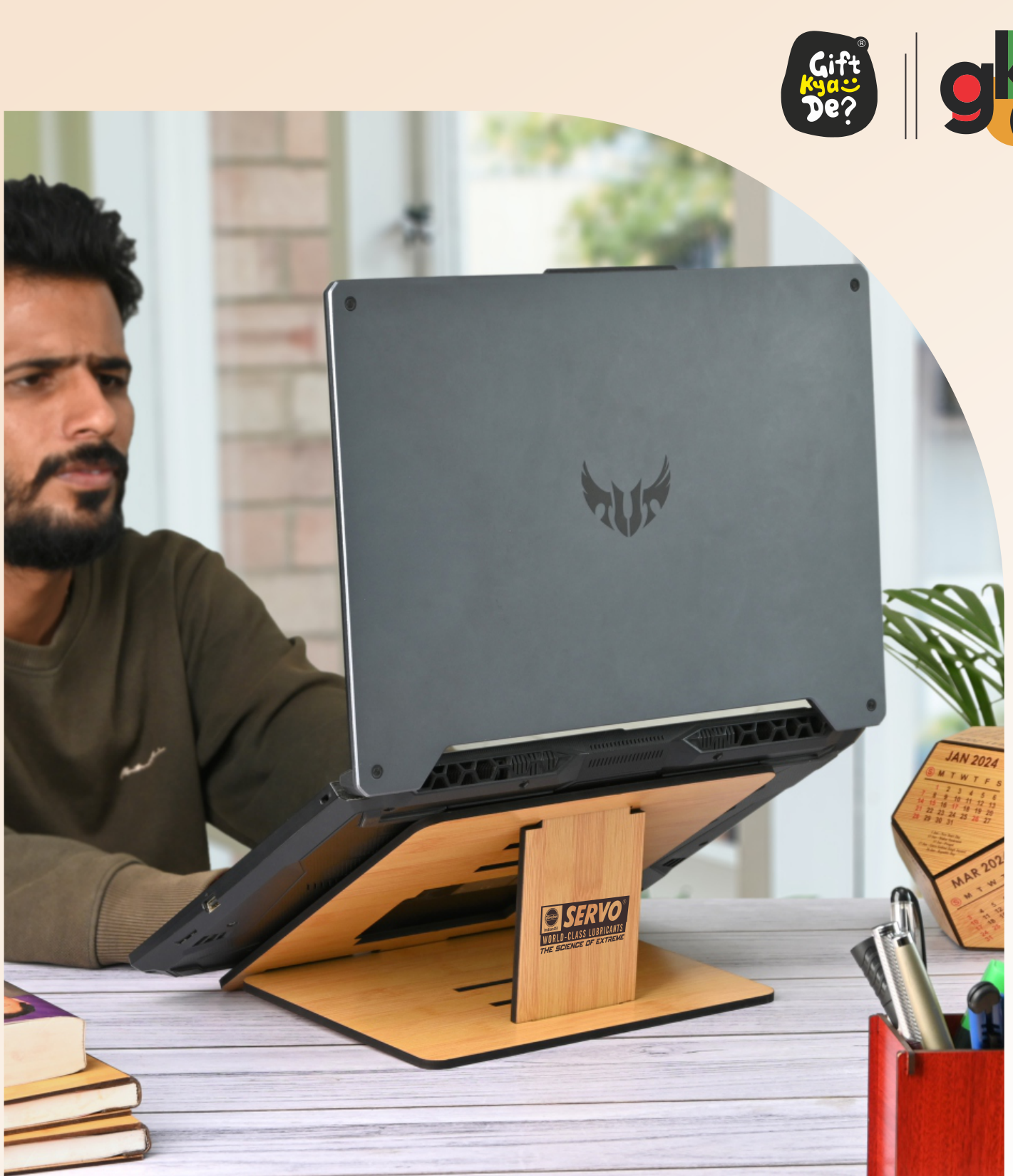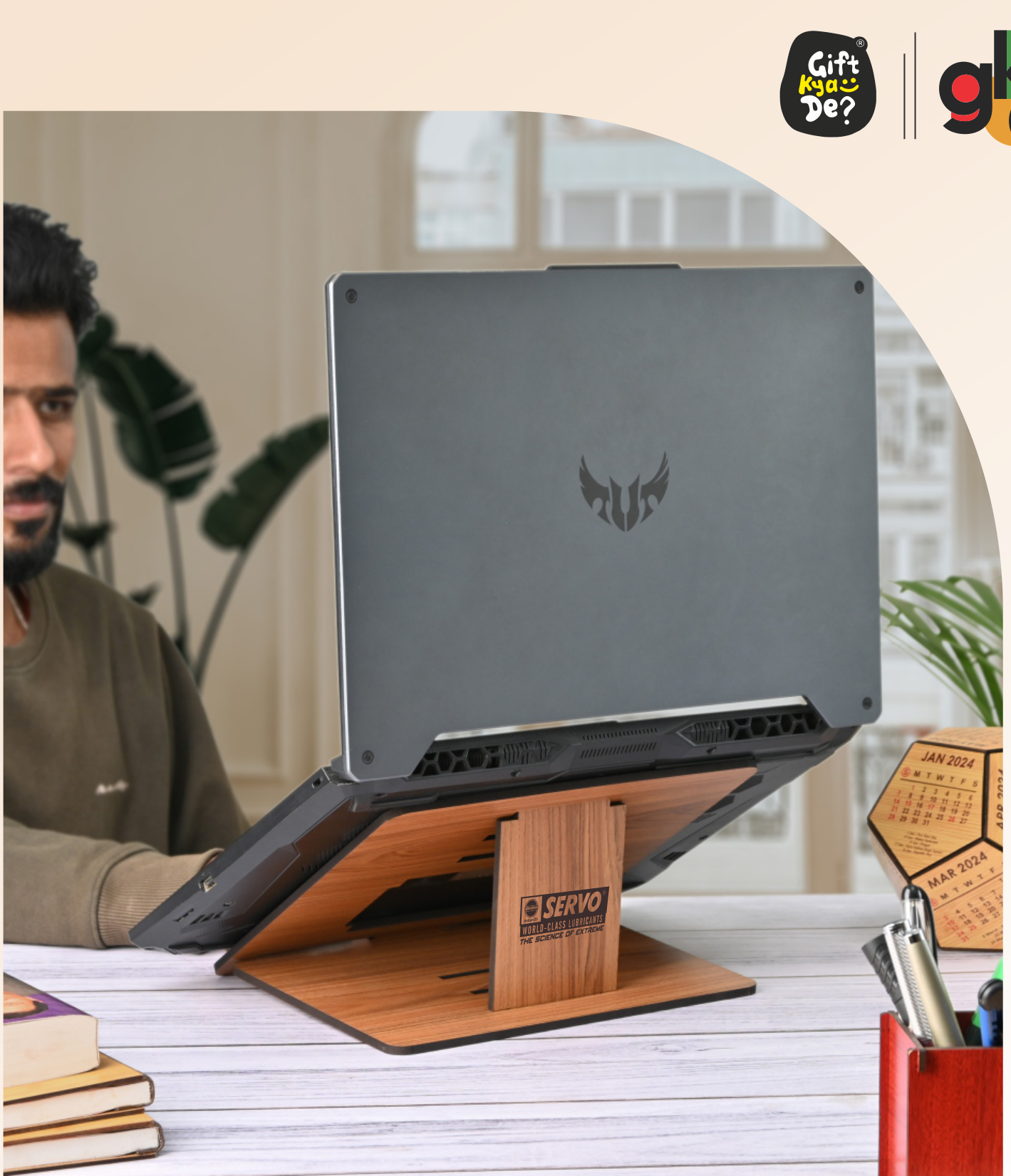 Elevate your laptop for improved ergonomics and better airflow with this stylish wooden stand. Its sturdy construction provides a stable platform for your device, reducing strain during long work sessions. The minimalist design complements any desk setup.