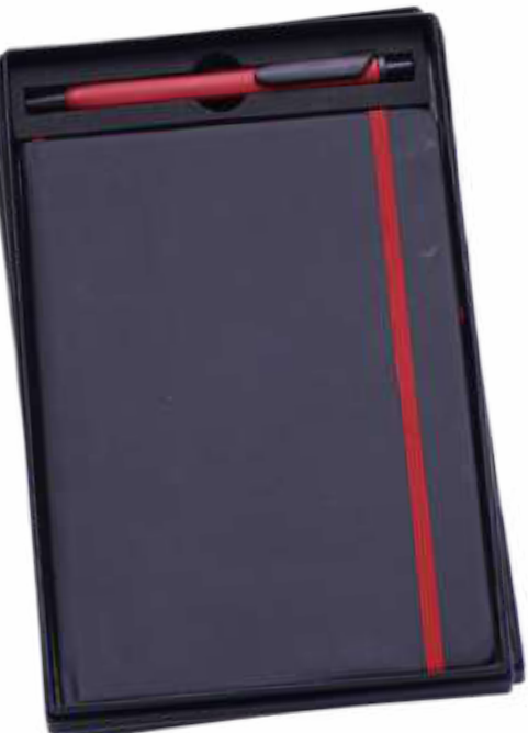 This executive set includes a sleek, dark notebook with a red elastic closure and a matching red and black pen. It's perfect for professionals, students, or anyone who appreciates a stylish and functional writing tool.