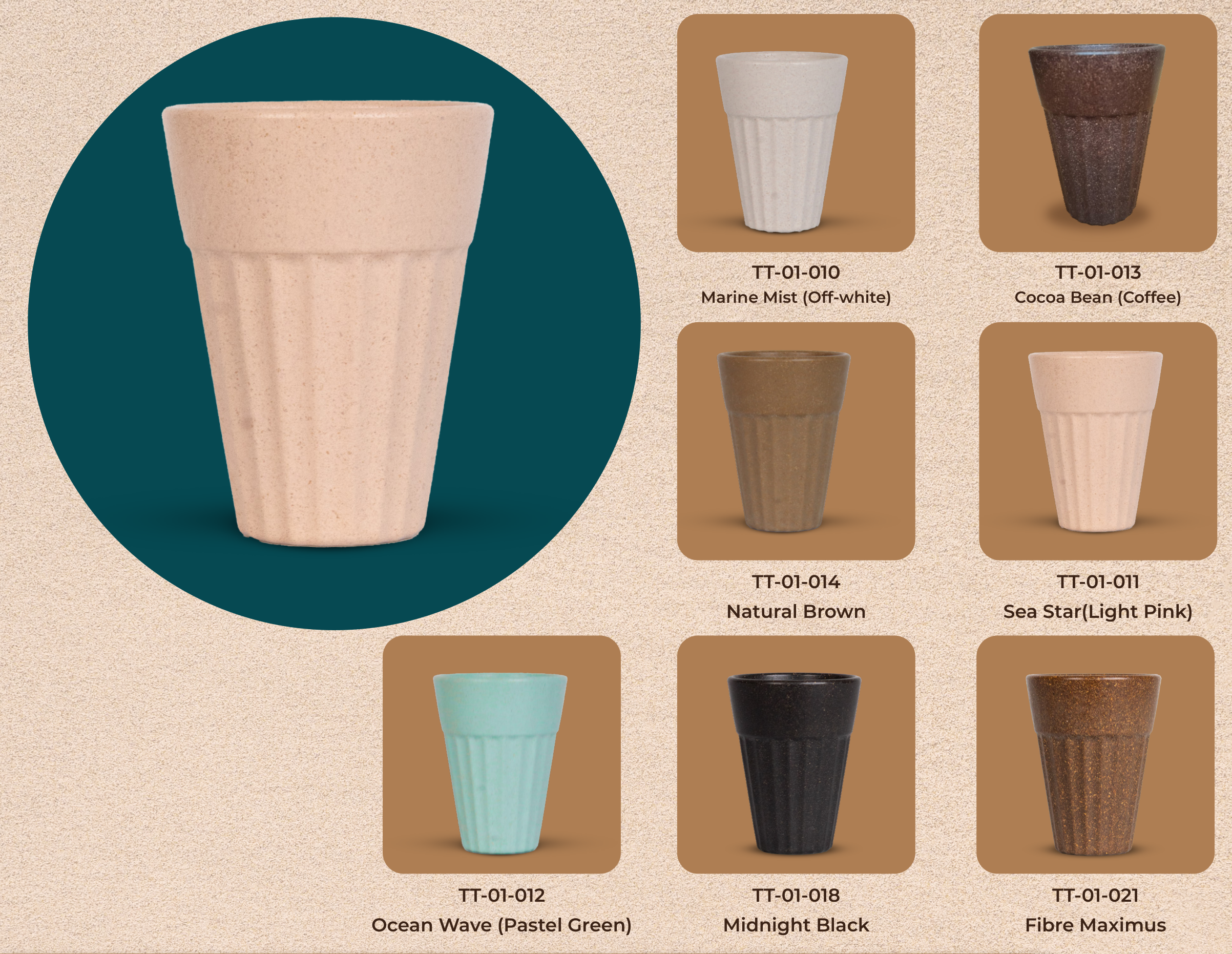 A set of stylish and durable tumblers designed for everyday use. Made from eco-friendly materials, these fluted glasses offer a comfortable grip and a classic aesthetic. Perfect for serving beverages at home or in a cafe setting.