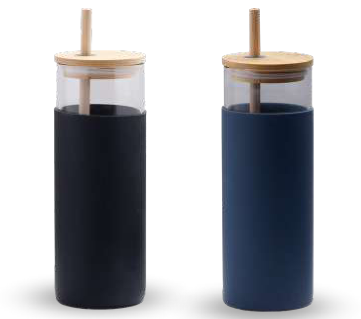 Stylish and eco-friendly glass tumbler featuring a natural bamboo lid and a reusable wooden straw. The silicone sleeve provides a comfortable grip and protection. Perfect for everyday use, whether at home or on the go.