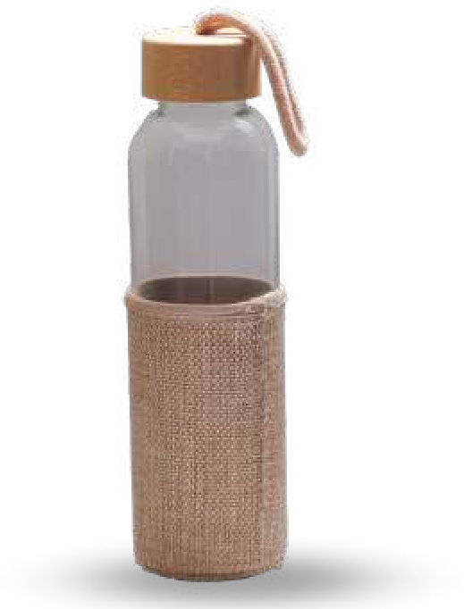 Glass Water Bottle with Bamboo Lid and Jute Sleeve
