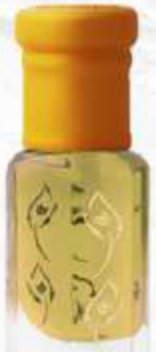 This exquisite perfume oil comes in a clear glass bottle with a golden hue, featuring an intricate embossed design. The vibrant orange cap adds a touch of elegance. Perfect for personal use or as a thoughtful gift.