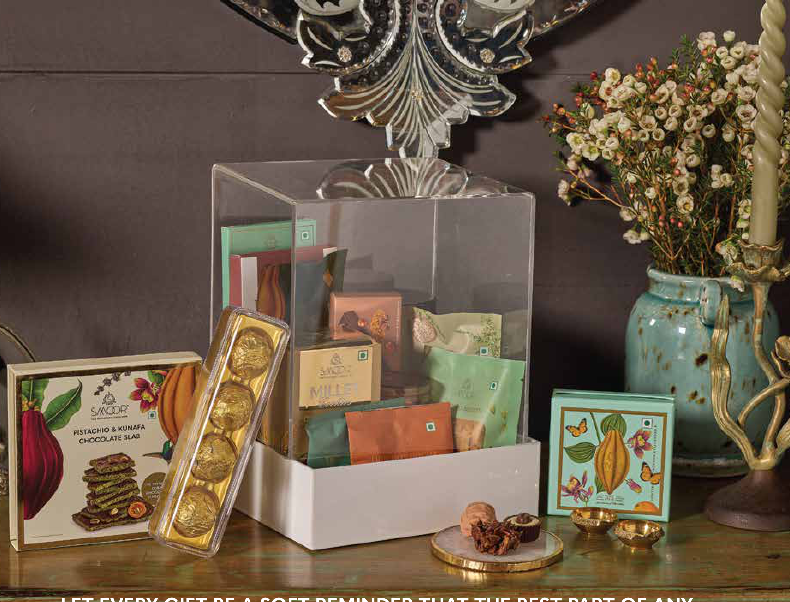 An exquisite collection of gourmet chocolates and artisanal sweets, presented in a sophisticated gift box. This selection features unique flavor combinations like Pistachio & Kunafa chocolate, perfect for discerning palates. It's an ideal choice for gifting on special occasions or indulging in a luxurious treat.