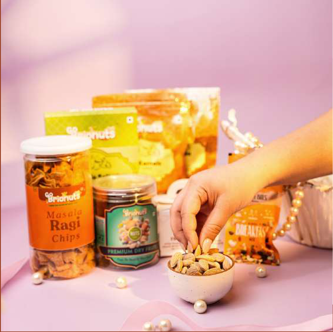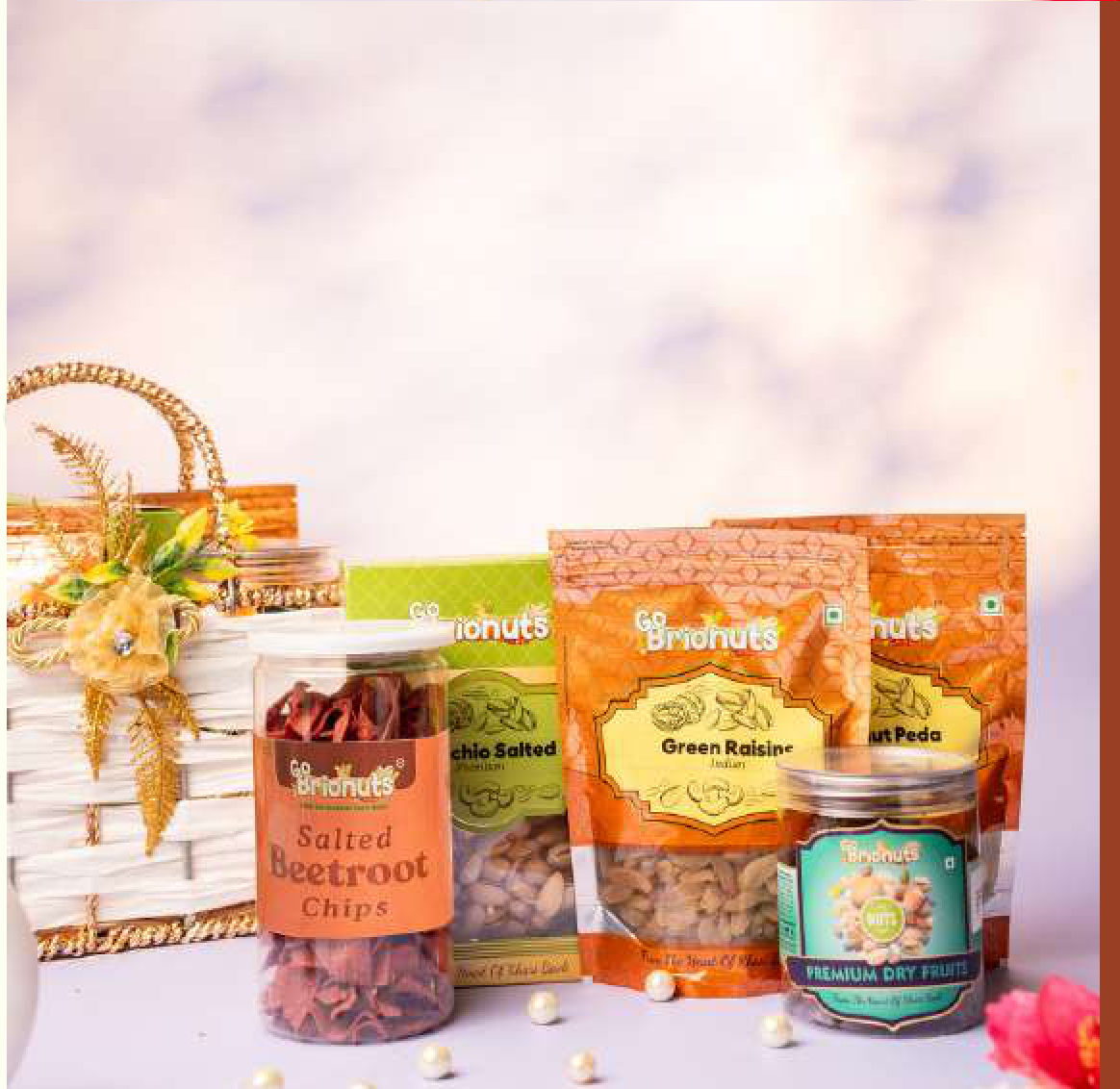 A curated selection of premium dry fruits and artisanal chips, presented in an elegant gift basket. This collection offers a delightful mix of sweet and savory flavors, perfect for any occasion.