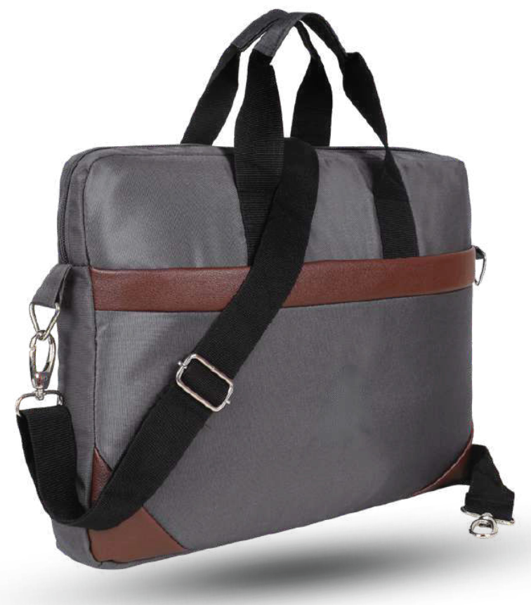 This stylish and practical laptop bag is crafted from durable grey canvas with faux leather accents. It features a comfortable shoulder strap and top handles for versatile carrying options, making it ideal for daily commutes or business trips.