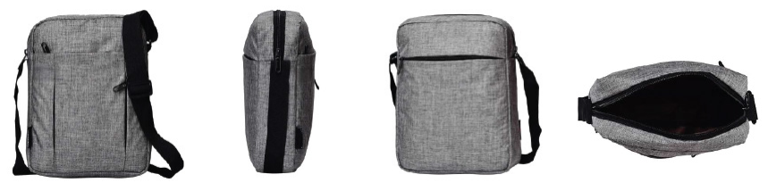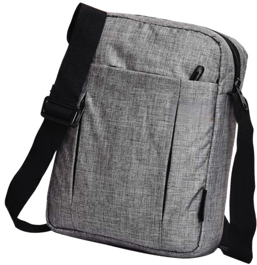 This practical crossbody messenger bag features a durable grey textured fabric and a comfortable adjustable shoulder strap. It includes multiple pockets for organized storage, making it ideal for daily use or travel.
