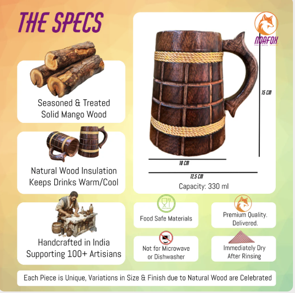 Elevate your drinking experience with our Handicraft Wooden Mug, a masterpiece of traditional craftsmanship combined with functional elegance. Made from premium quality natural wood, this mug is designed to add rustic charm to your kitchen or dining collection.