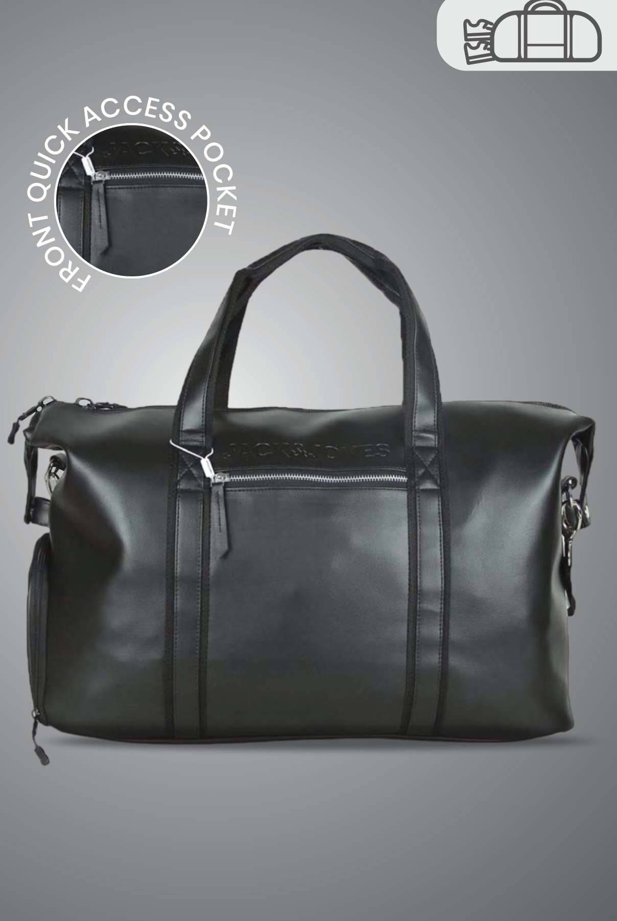 This stylish duffle bag from Jack & Jones is crafted from durable faux leather, perfect for weekend getaways or gym sessions. It features a quick-access front pocket for essentials and comfortable top handles for easy carrying.